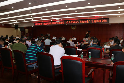 7月24日,市政協召開食品安全監管專題協商會,就“加強食品安全監管體系建設,合力保障舌尖上的安全”選題、調研報告及建議案作了說明。市政協主席徐新楚,市委常委、常務副市長唐道明,市政協副主席黎四清、李平、萬五龍,秘書長張群望參加。