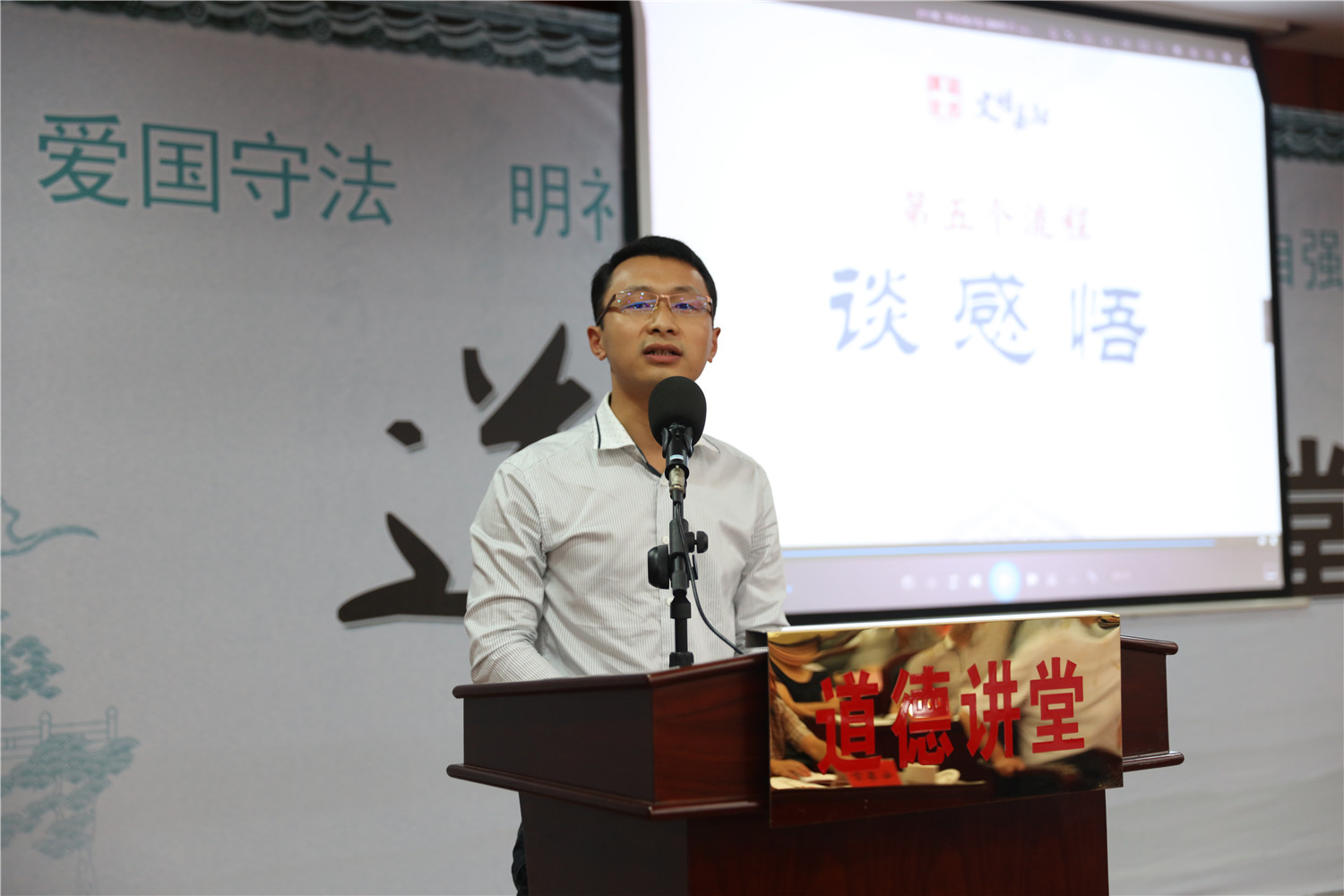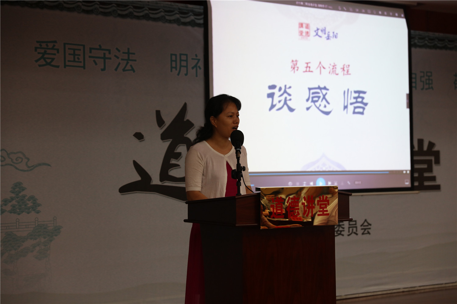 此次道德講堂設(shè)有唱歌曲、學模范、誦經(jīng)典、談感悟和送吉祥等環(huán)節(jié),觀看了全國愛崗敬業(yè)道德模范、北京兒童醫(yī)院超聲科主任賈立群同志的先進事跡。